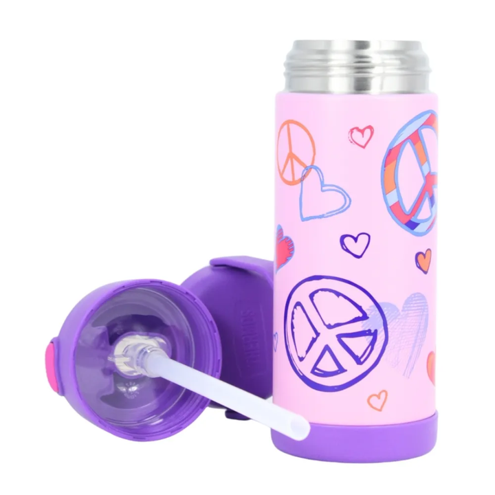 La botella de 12 oz incluye un asa de transporte integrada con agarre suave al tacto, lo que facilita que los niños la lleven consigo durante todo el día. El mango también se puede plegar cuando no se usa.