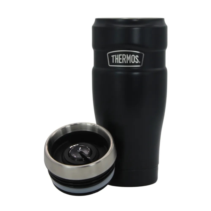 ¡Nunca más tendrás que beber café frío durante tu viaje matutino! El Termo Aislante THERMOS King de 16 oz mantendrá...