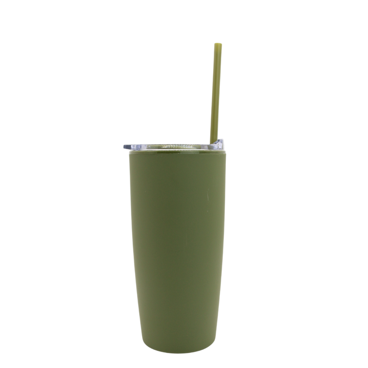 Termo mate 20 oz. Doble pared de plástico tipo acrílico, Incluye tapa y popote .