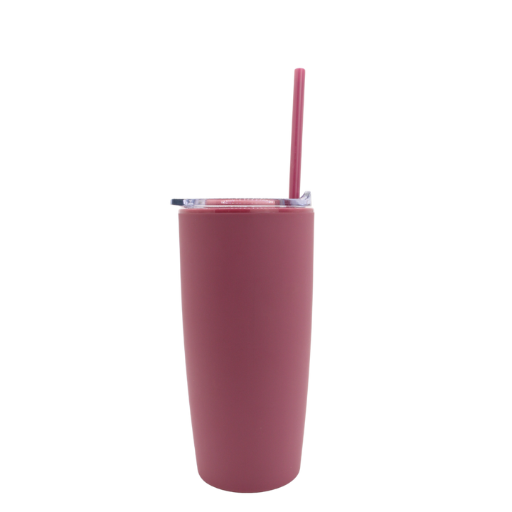Termo mate 20 oz. Doble pared de plástico tipo acrílico, Incluye tapa y popote .